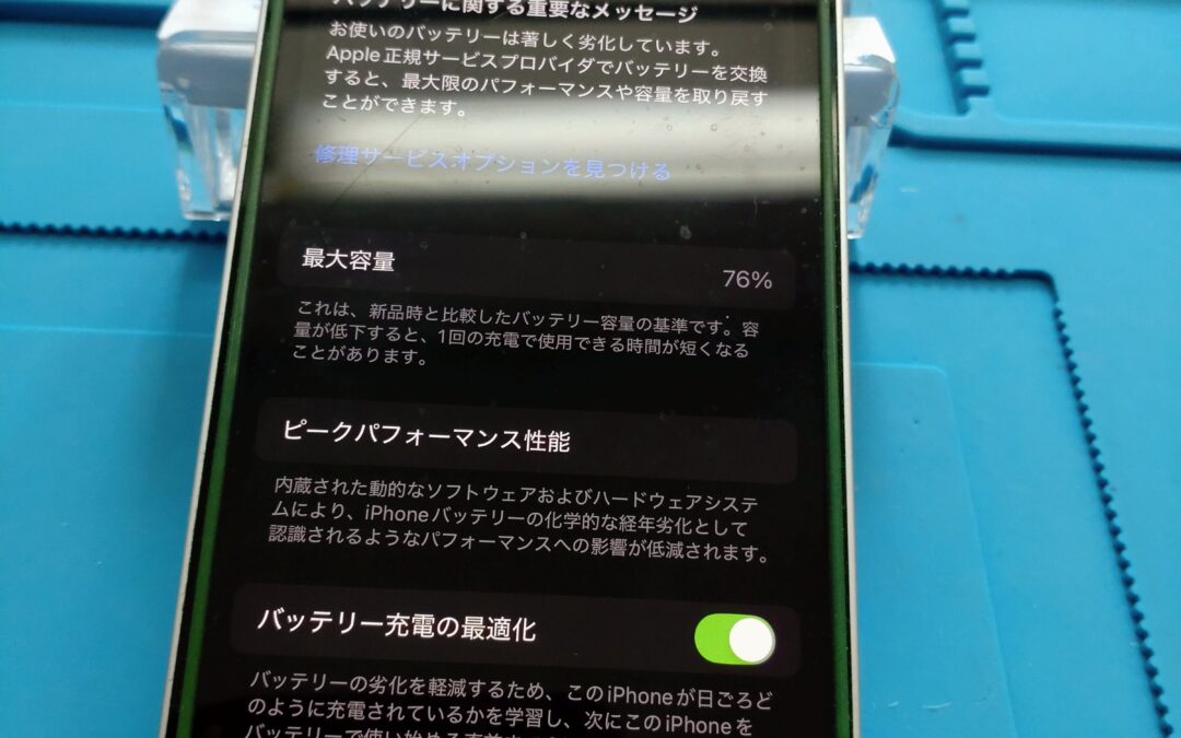 バッテリーの最大容量が76%でした。